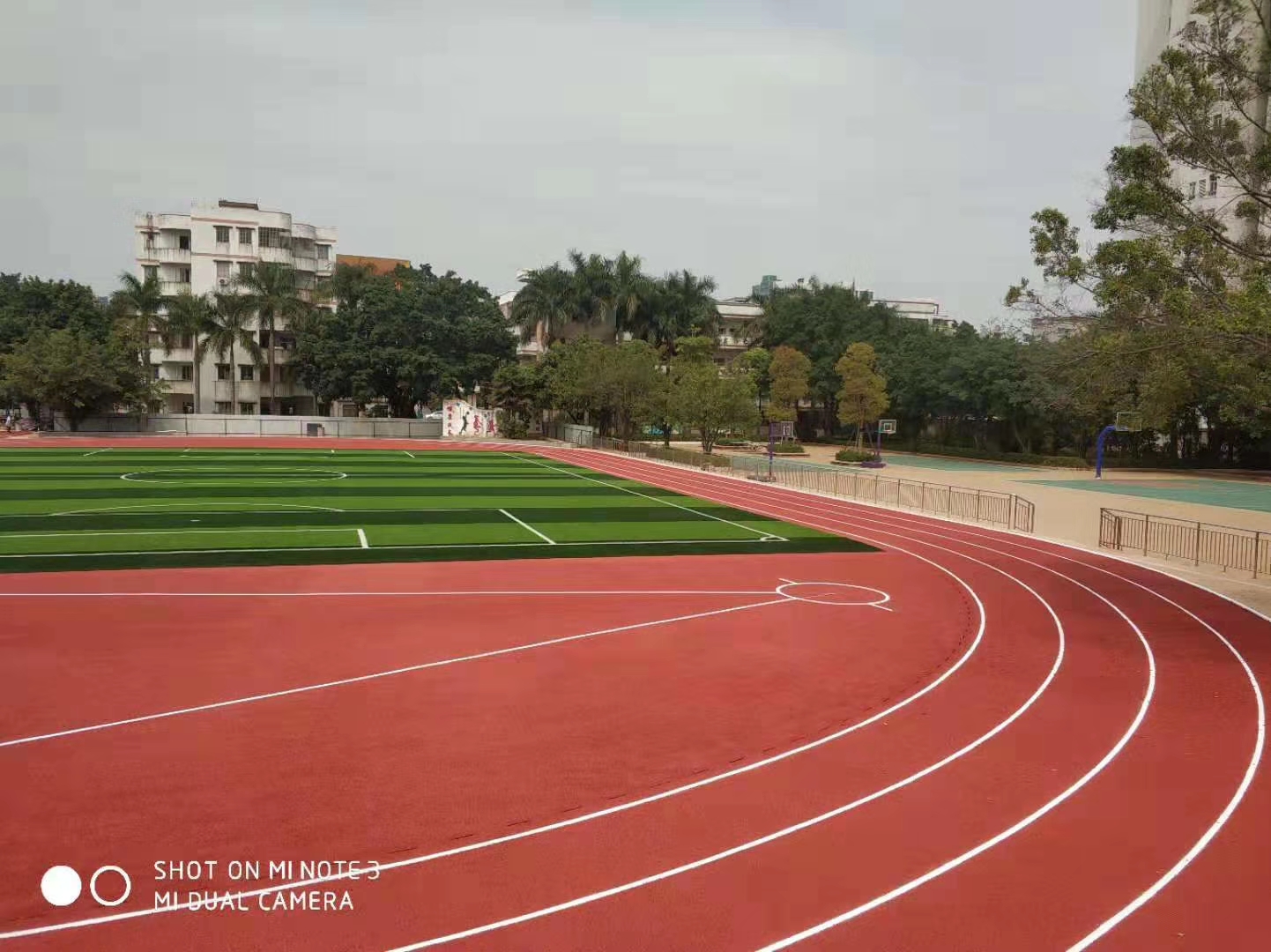 中山大學新國標塑膠跑道人造草足球場施工建設完工