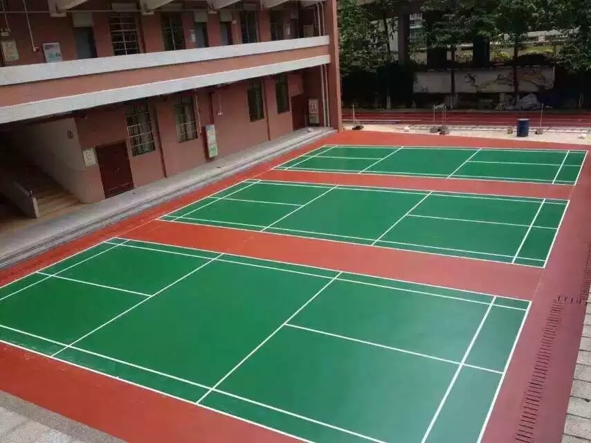 羽毛球場PVC地板一般為PVC運動地板,具體來說就是以聚氯乙烯及其共聚樹脂為主要原料,加入填料、增塑劑、穩定劑、著色劑等輔料,在片狀連續基材上,經涂敷工藝或經壓延、擠出或擠壓工藝生產而成。一般是由多層結構疊壓而成,一般有耐磨層(含UV處理)、玻璃纖維層、彈性發泡層、基層等。
