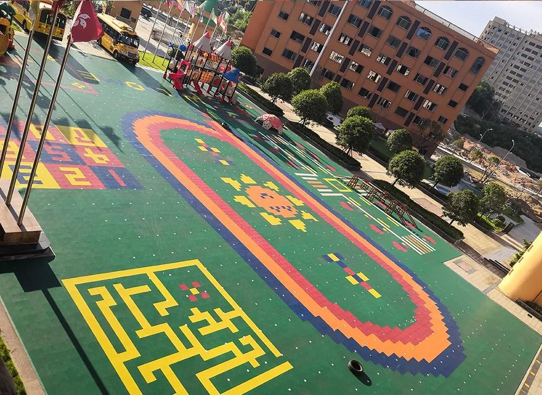幼兒在場地上玩耍時,踩在地板上,腳感舒適,可降低摔倒后的痛感。